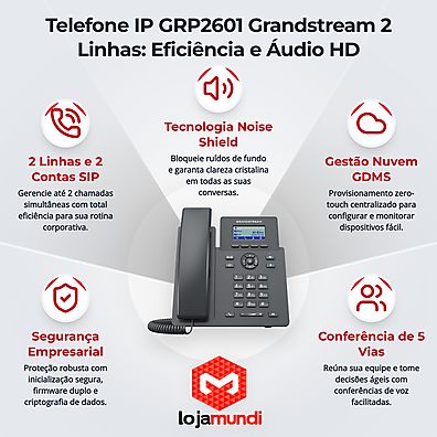 O GRP2601 Grandstream Telefone IP vem com um design amigável, suporte a dois clientes SIP e alta qualidade de áudio HD. Essas características garantem clareza nas chamadas e uma experiência de usuário superior, essencial para o sucesso dos seus negócios.