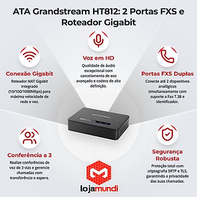 HT812 ATA Grandstream 2FXS - Conectividade Superior para Telefonia IP