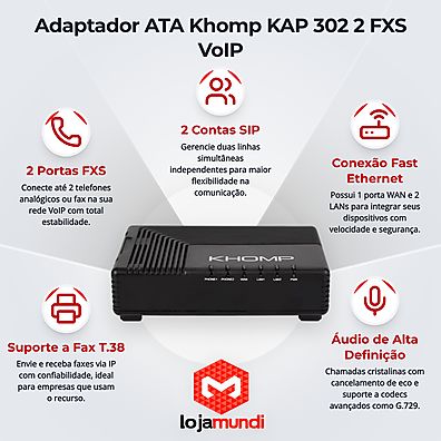 KAP 302 ATA Khomp 2 FXS - Conectividade e Eficiência para Telefonia Analógica